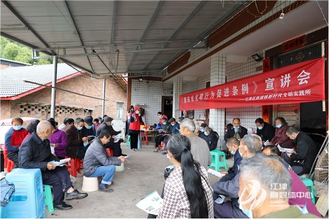 志愿宣讲员们结合村规民约对《重庆市文明行为促进条例》(以下简称《条例》)进行深入解读,从文明用餐、文明出行和文明健康生活方式等维度解析,以正反典型举例用浅显易懂的语言讲出创建文明世界的道理。